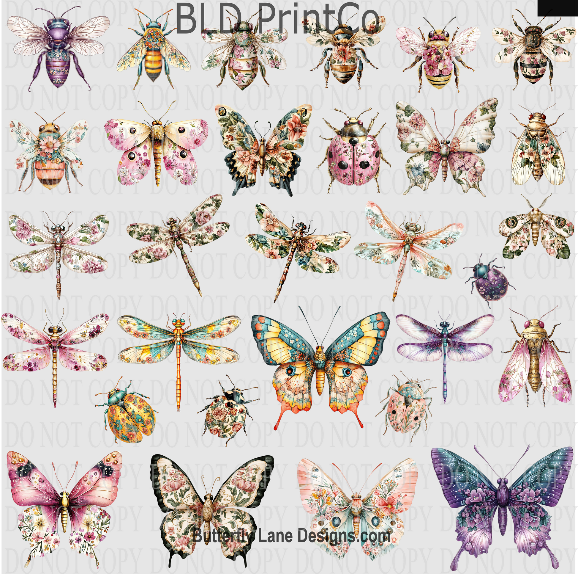 Bridgeton Inspired Floral Insects | Botanical Butterflies & Bees Decal Sheet | CAPS 69