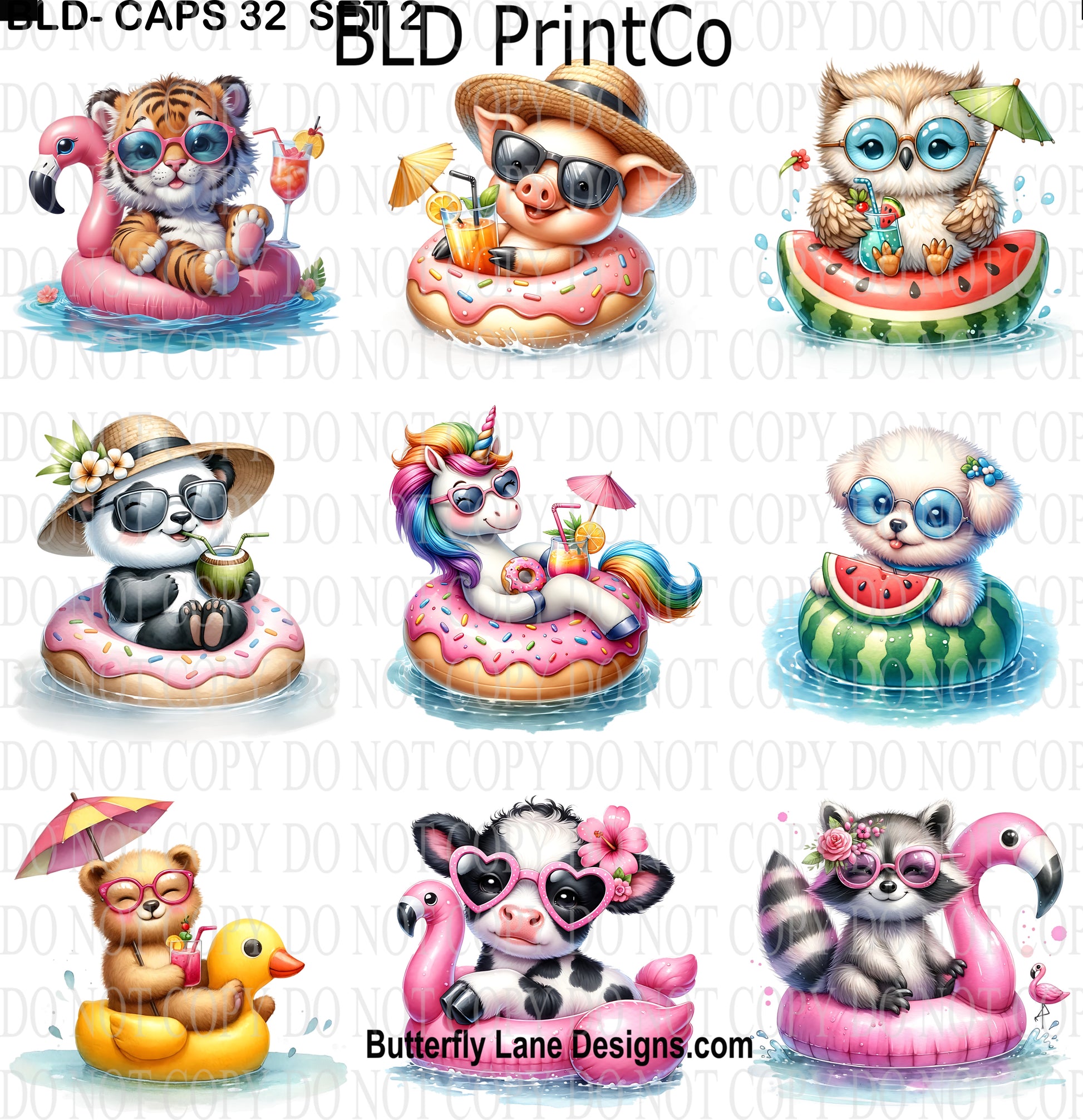 CAPS 32 Cute Animals in floaties- Set 2