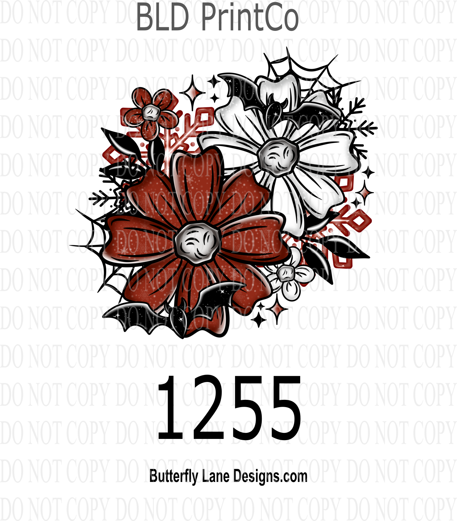 D1255 Bat_Christmas_Florals
