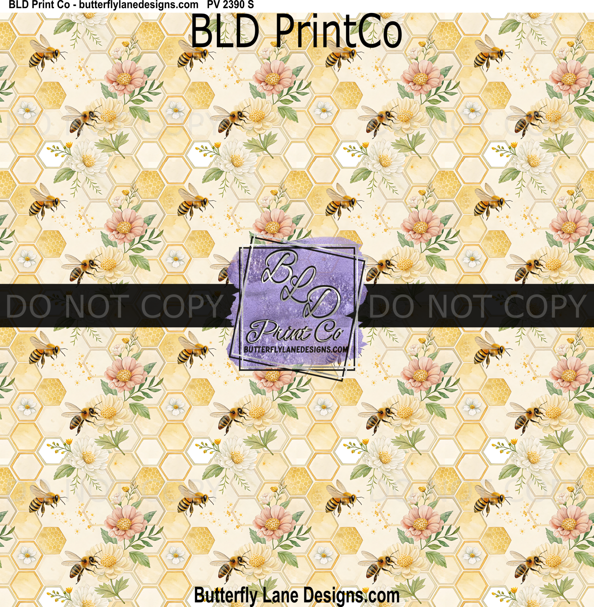 Golden Honeycomb Garden | Watercolor Bee & Wildflower | PV 2390