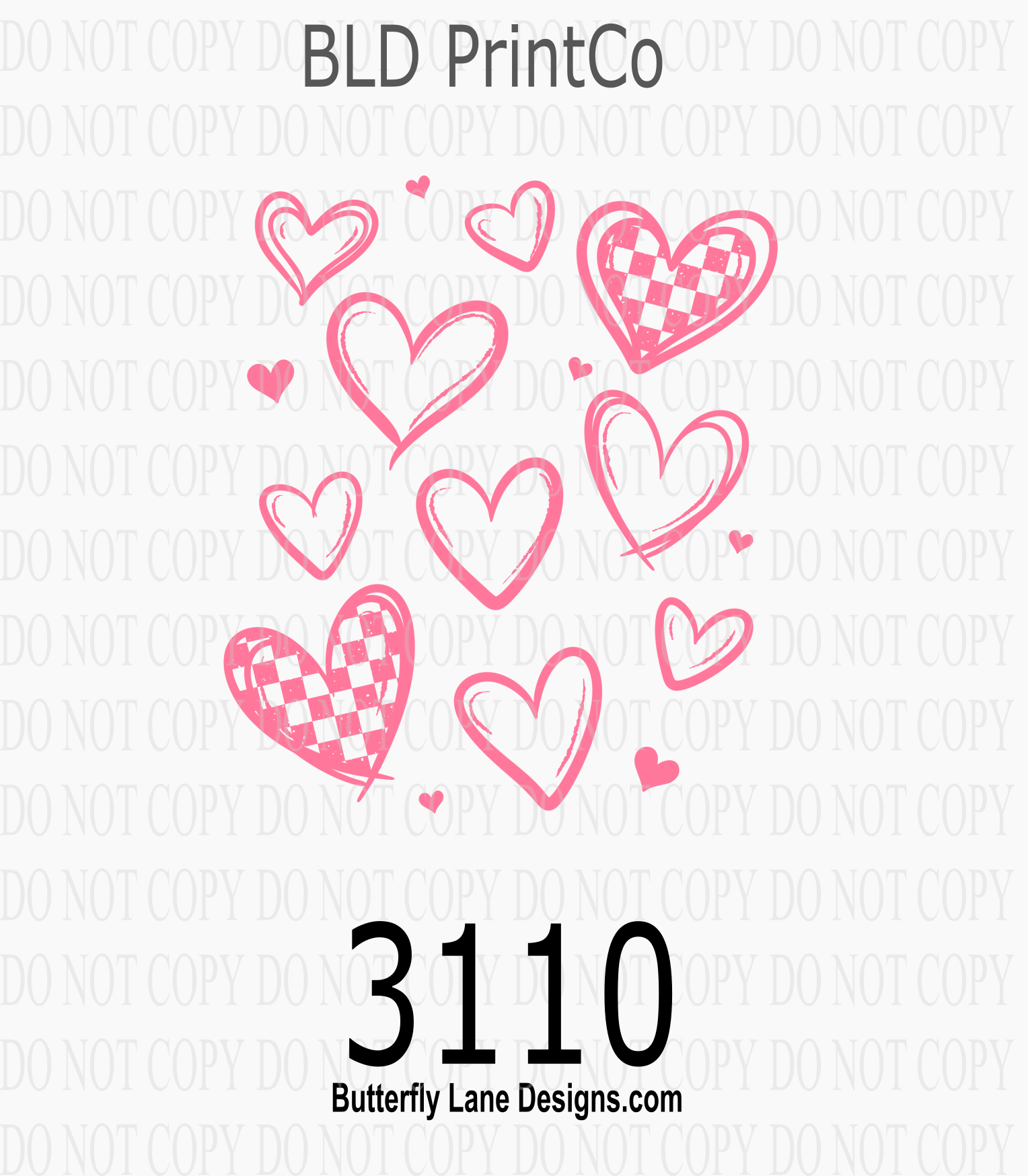 Pink Doodle Hearts & Checkered Pattern | D3110